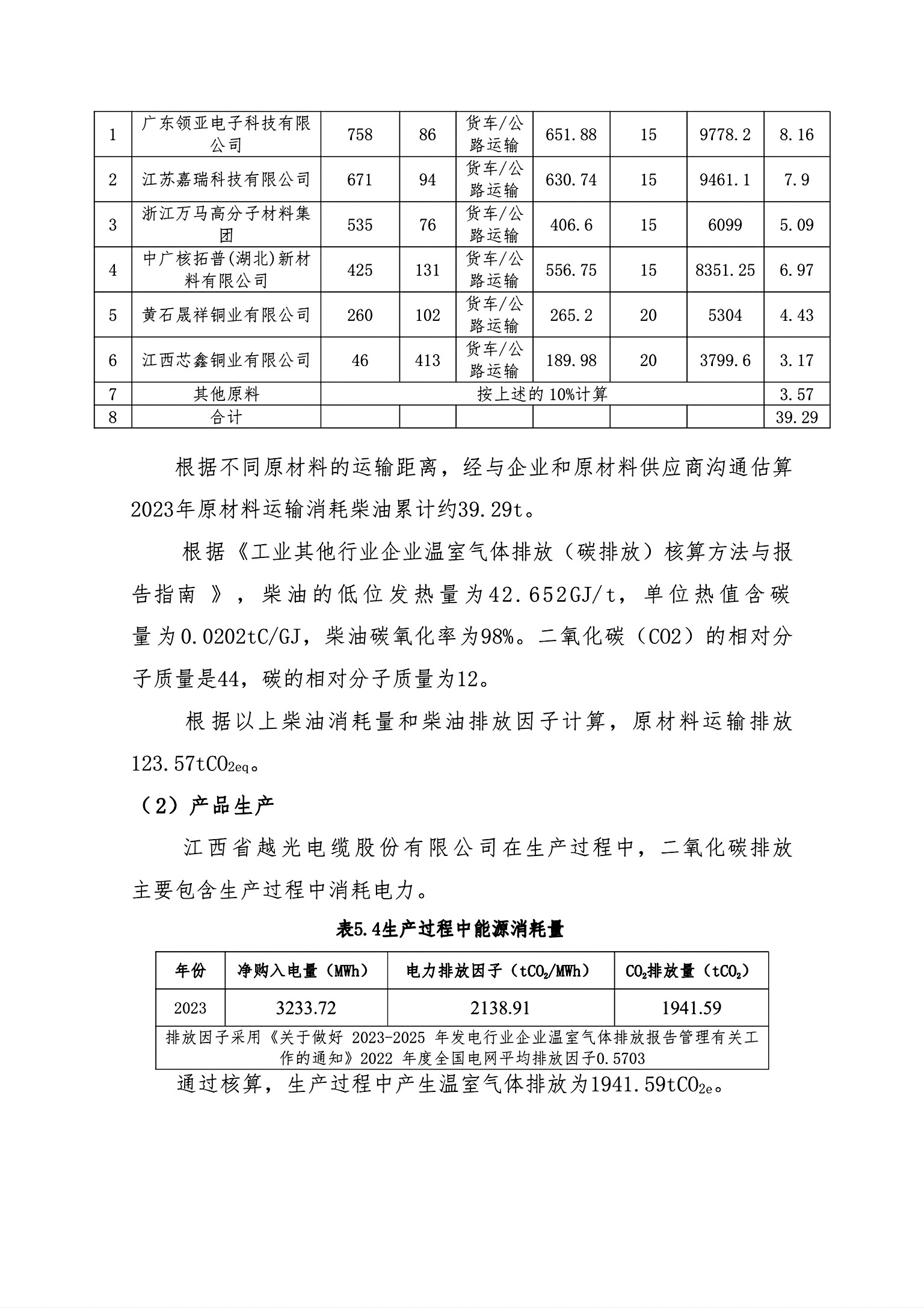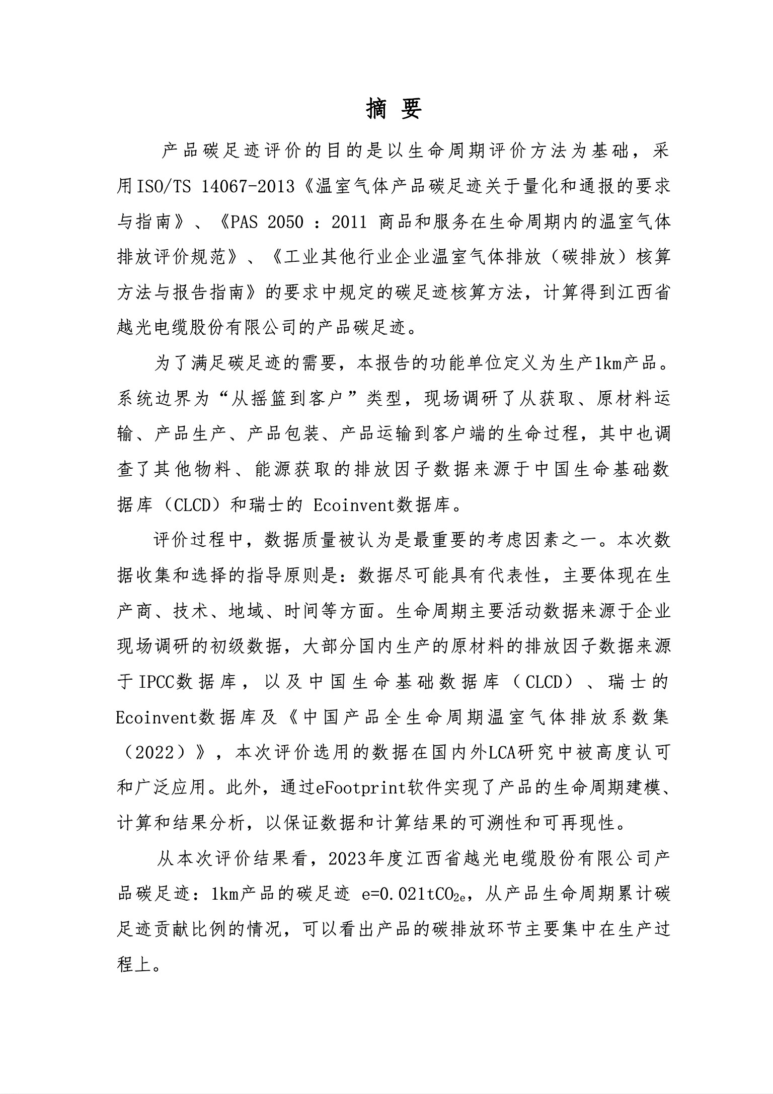 江西省越光電纜股份有限公司產(chǎn)品碳足跡報(bào)告